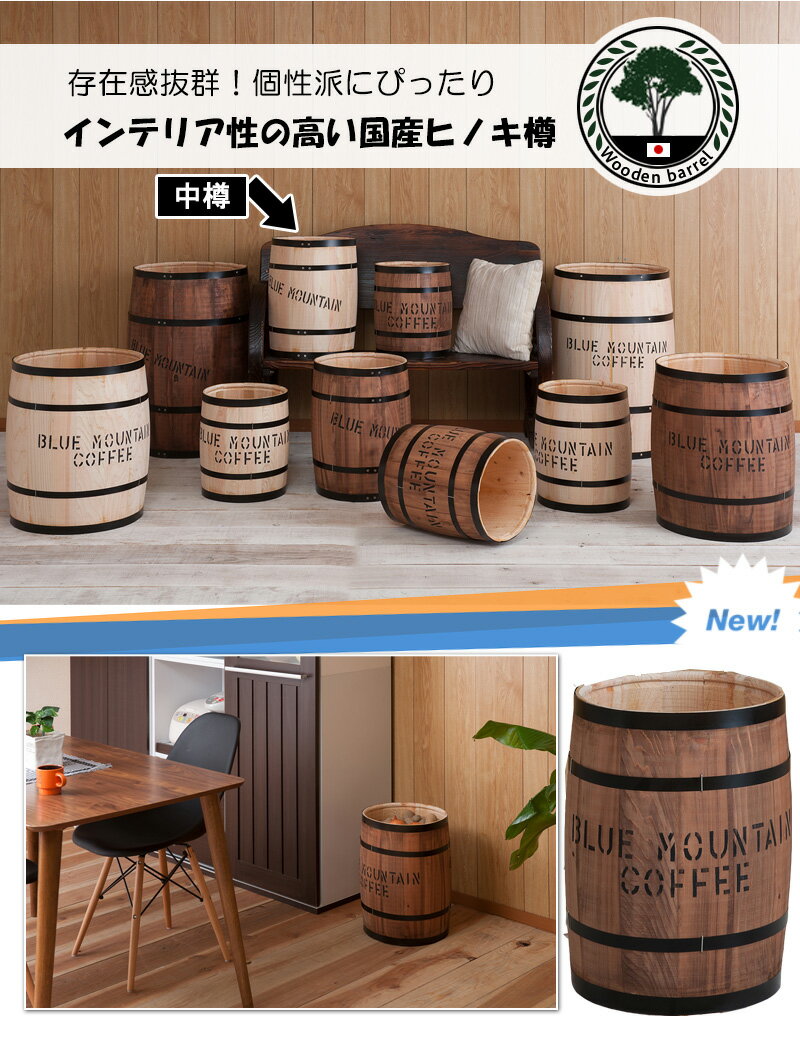 国産のヒノキを使用したオシャレな木樽です プランターカバーやダストボックス・ごみ箱として使えるカントリーテイストの木製樽 ケース 小物入れ キッズ おもちゃ箱 樽型プランターカバー コーヒーバレル コーヒー木樽 カントリー雑貨 カントリーテイスト 素朴 アメリカ雑貨 アメリカン雑貨