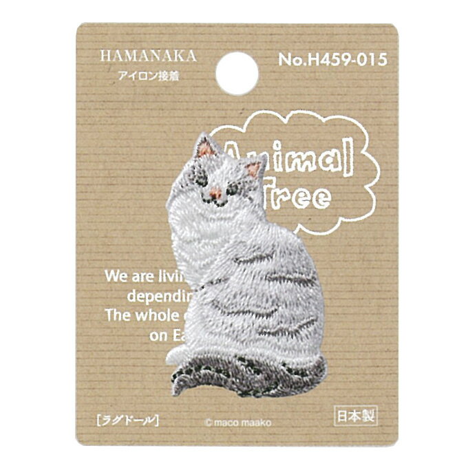 アニマル・ツリー ラグドール ハマナカ ワッペン アイロン 接着 動物 猫 ねこ ネコ cat 手芸用品 刺繍 手作り 入園 入学 アップリケ Animal Tree H459-015 ゆうパケット 送料無料